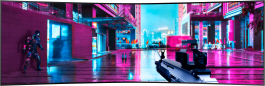 A higher resolution means the screen can show more pixels for a sharper and more realistic image. Content is delivered with enhanced depth in every detail for perfect clarity, while a wider screen such as 21:9 or 32:9 aspect ratio provides an immersive visual experience for any movie or show.